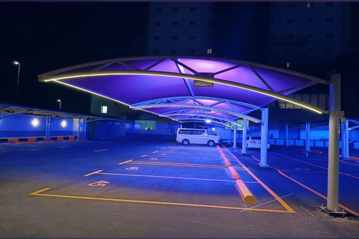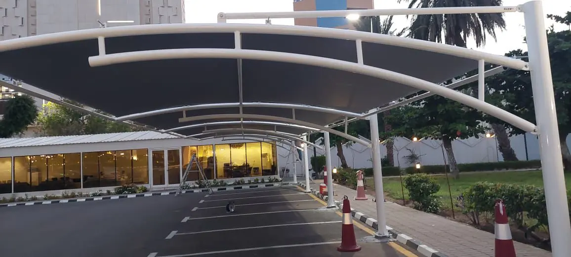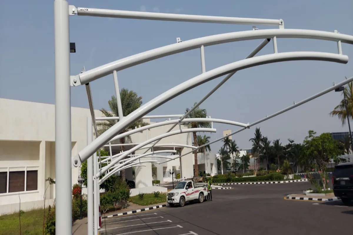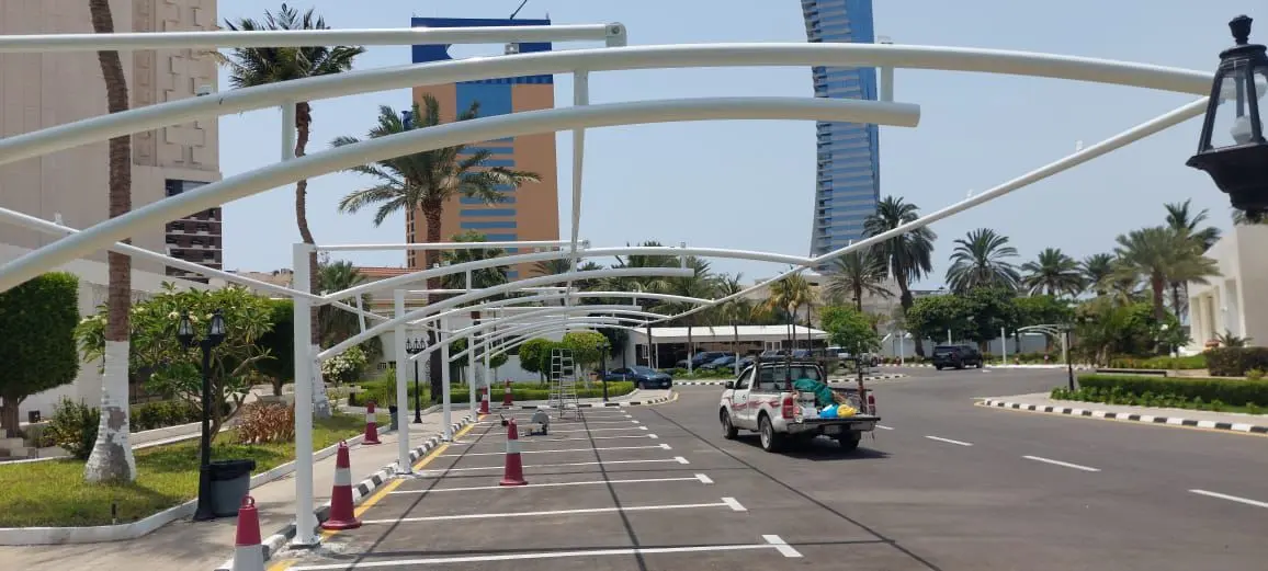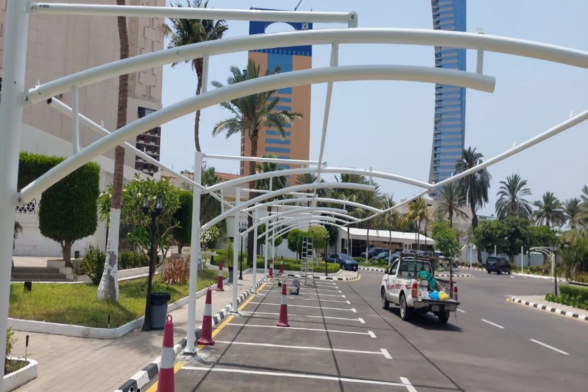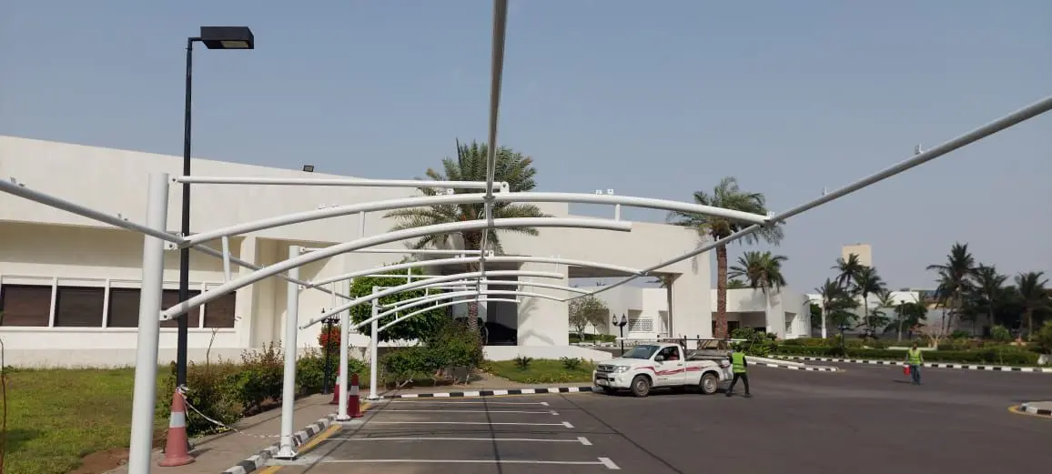 توريد وتركيب مظلات سيارات فرنسي مقوسه في قصر ملكي في جدة
